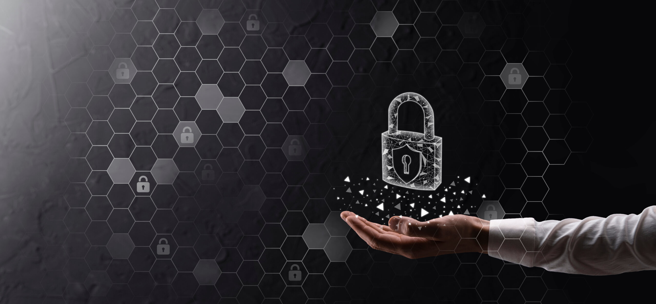Cyber security network. Padlock icon and internet technology networking. Businessman protecting data personal information on tablet and virtual interface. Data protection privacy concept. GDPR. EU.